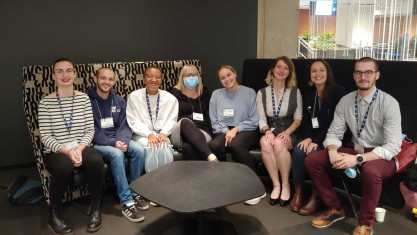 Sur la photo de l'équipe, de gauche à droite: Marine Suchet, Romain Vrba, Linsey Yvette Mouatchô, la professeure Isabelle Lavoie, Marie-Ève Blanchette, Laura Malzebin, Maya Bedoiseau et Antoine Tourret.