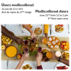 Nous espérons que vous vous portez bien et que vous êtes prêt.e.s à participer à notre événement dîner multiculturel, qui se tiendra le 22 juin durant la pause du dîner entre 12h et 14h. C'est une occasion passionnante de célébrer la diversité culturelle présente parmi nous à l’INRS !