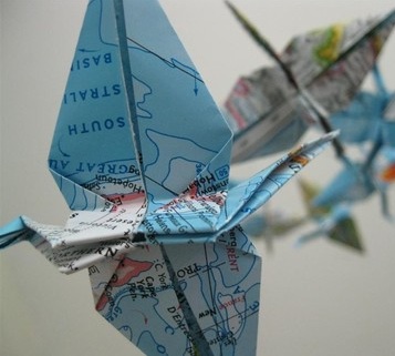L'objectif: des créations en origami réalisées à partir de vieilles cartes topographiques. Emballage, grue d'Hiroshima, étoile, papillon, fleur ou chauve-souris... laissez aller votre imagination.