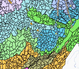 Le fichier Pentes_nofeuillet.lyr représente une symbologie (plages de couleur) en classes de pentes, soit : A (0 à 3 %), B (3 à 8 %), C (8 à 15 %), D (15 à 30 %), E (30 à 40 %), F (40 à 50 %), X1 (50 à 70 %), X2 (70 % et +).