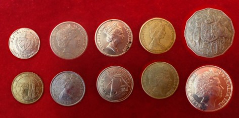 Petit fait curieux, une poignée de monnaie étrangère se sont retrouvés dans le pot, dont des pièces australiennes (ah, les sabbatiques...) tellement volumineuses et lourdes qu'on pourrait émettre l'hypothèse que les Australiens sont au moins 50% plus costauds que la moyenne des terriens. Ou qu'ils ont les poches toutes étirées. Il y avait aussi une pièce de Cuba, une de la Barbade, des centimes d'Euros et... un pièce des îles Caiman (tiens tiens...!! C'est pas un paradis fiscal, ça?)