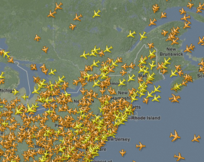 Posez votre curseur sur le petit avion et vous verrez le numéro du vol. Cliquez sur l'avion et dans la marge de gauche se déroule les coordonnées du vol: compagnie, origine et destination, altitude, type d'appareil, vitesse, alouette! Il ne manque que le prénom de l'hôtesse et l'âge du capitaine.