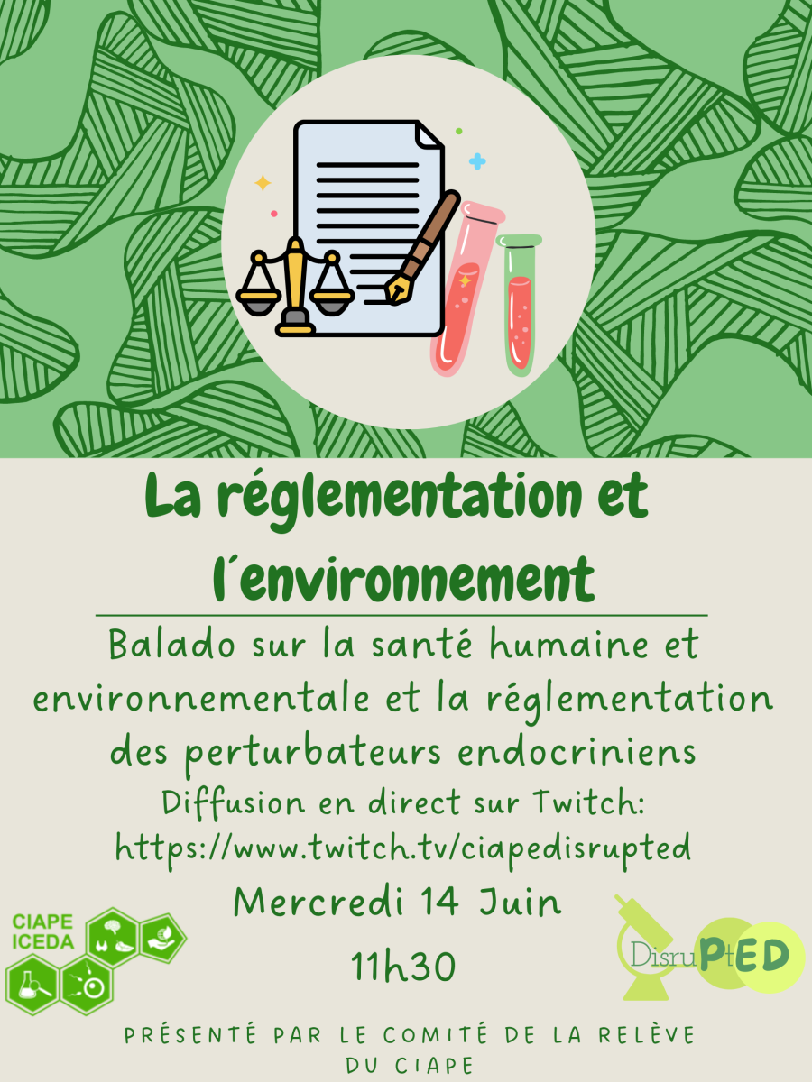 Nos membres étudiants vous parleront de la réglementation des perturbateurs endocriniens et de leurs effets sur la santé humaine et environnementale