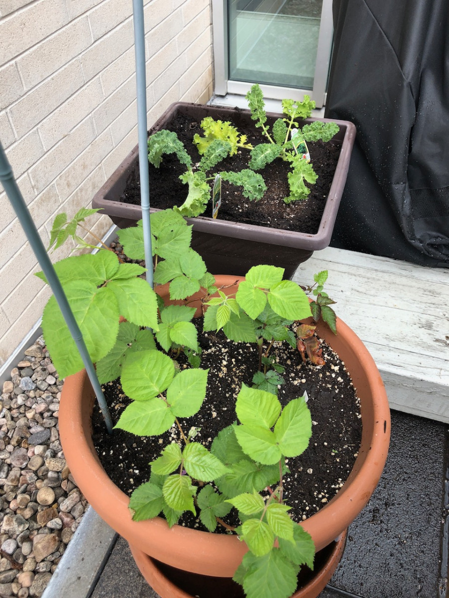 Tomates, aubergines, poivrons (doux et fort), chou frisé, fruits, fines herbes et fleurs sont maintenant les rois et rennes de notre belle terrasse.