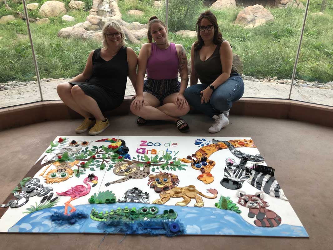 L'équipe du projet MosaïPlastiQ, chapeautée par Isabelle Lavoie, était présente au Zoo de Granby en fin de semaine dernière, soit du 30 juin au 2 juillet, pour une activité animation/sensibilisation autour du thème des déchets de plastique. Mariem Fadhlaoui et Marie-Eve Blanchette complétaient le trio.