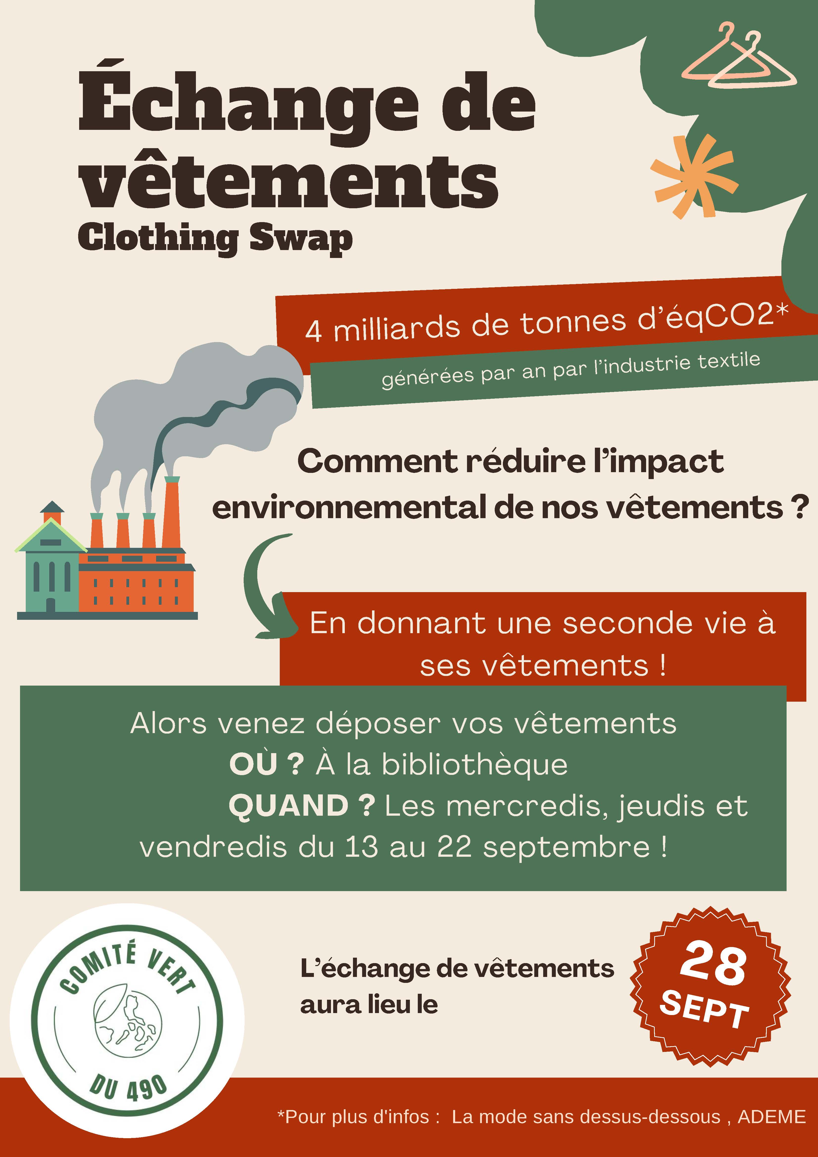 Come and drop off your clothes on Wednesdays, Thursdays and Fridays from the 13th to the 22nd of September at the library! Be ready to bargain-hunt for free on the 28th of September for our ephemeral thrift shop!