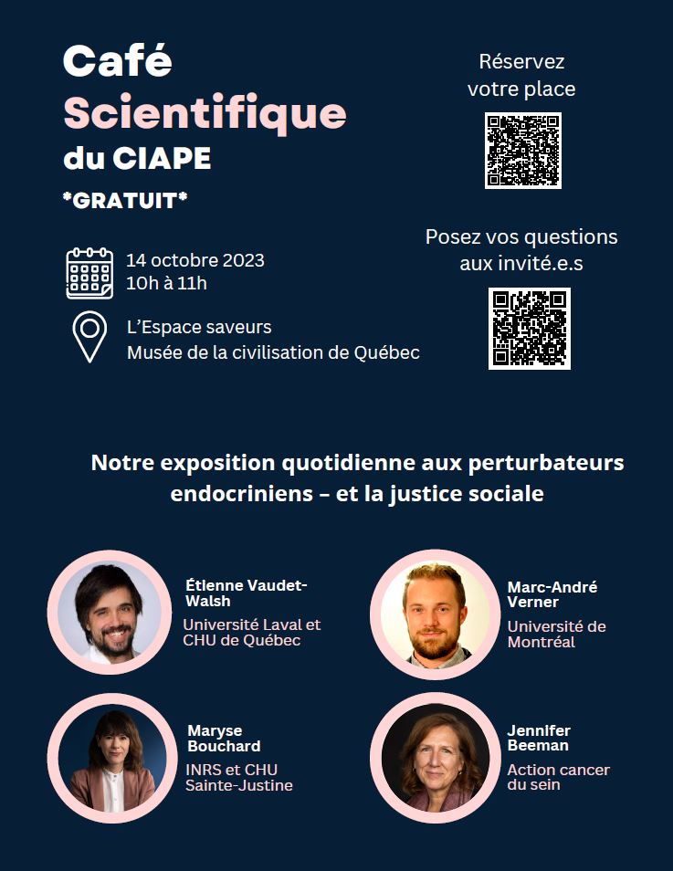 Invité.e.sÉtienne Vaudet-Walsh, Université Laval et CHU de QuébecMarc-André Verner, Université de MontréalMaryse Bouchard, INRS et CHU Sainte-JustineJennifer Beeman, Action cancer du sein