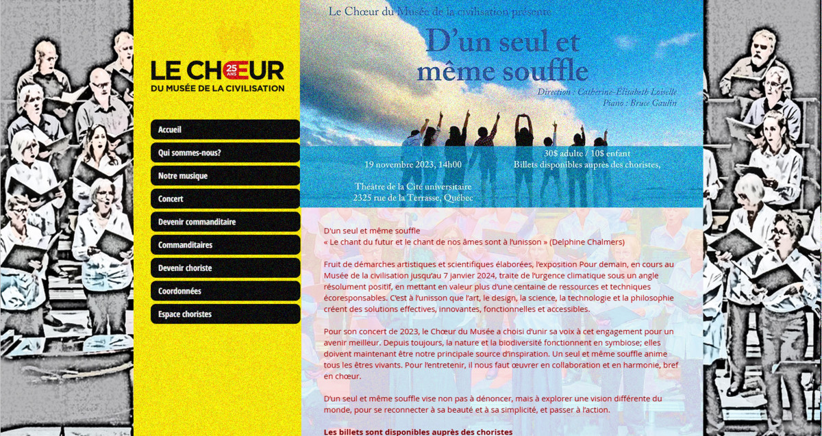 - Quoi ? Concert « D'un seul et même souffle » en lien avec l'exposition « Pour demain » du Musée de la civilisation