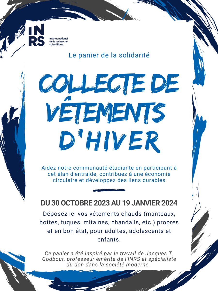 L'hiver arrive à grand pas, alors nous vous invitons à donner vos vêtements chauds que vous ne portez plus dans la boîte de dépôt du hall d'entrée. Ces vêtements pourront servir aux nouveaux arrivants à s'équiper pour les grands froids. C'est aussi un bon moyen de réduire grandement l'empreinte carbone de votre garde-robe et pour d'autres d'économiser !