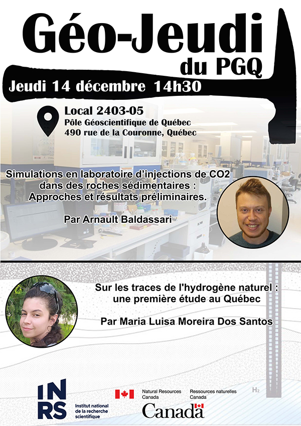 Pour finir en beauté l'année 2023, jeudi 14 décembre 14h30, au local 2403-05, dans le cadre des Géo-jeudis, le Pôle géoscientifique de Québec (PGQ) vous propose deux conférences !