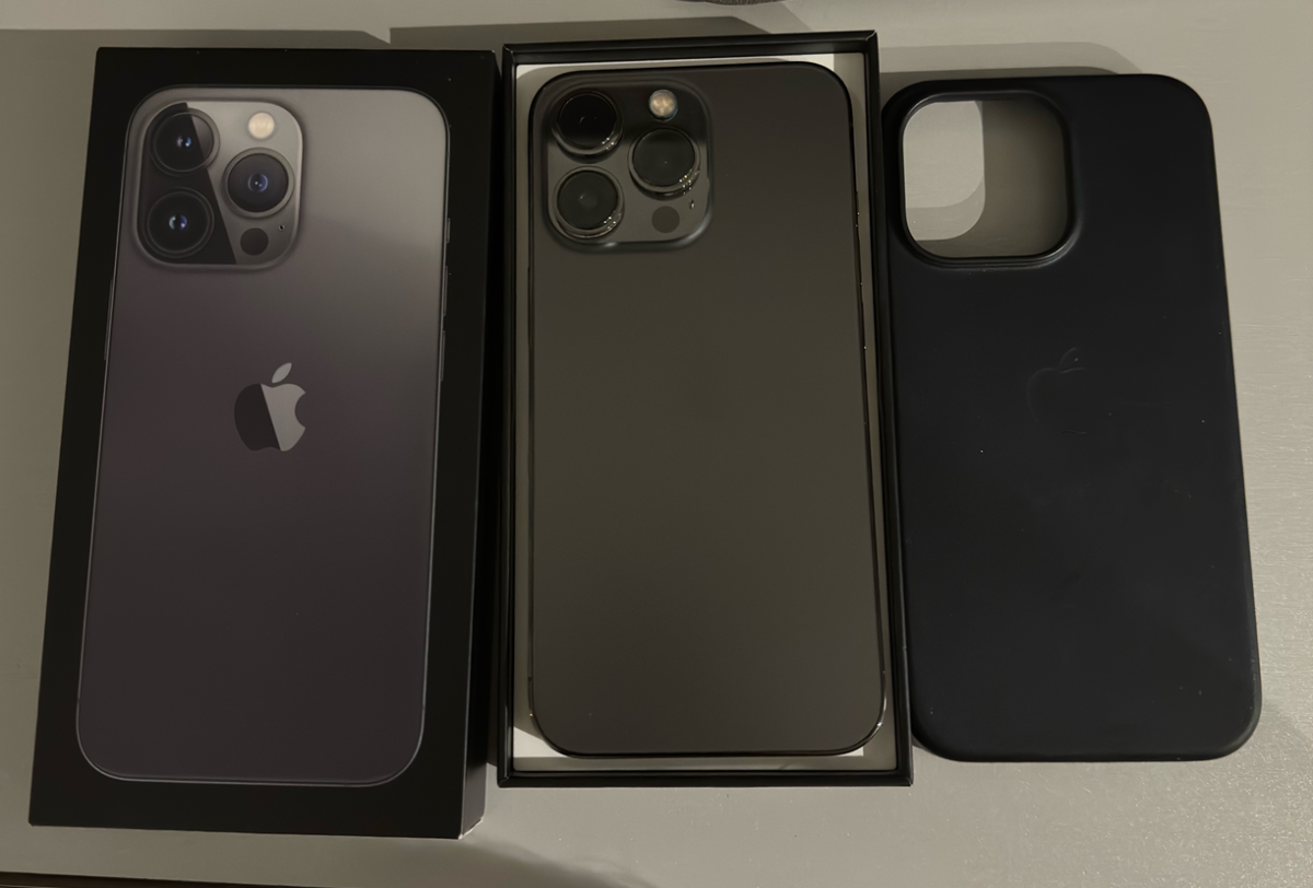 IPhone 13 Pro 256 Go comme neuf sans aucune rayure. Batterie à 88 %. Vient avec un étui en cuir Apple et deux autres étuis.