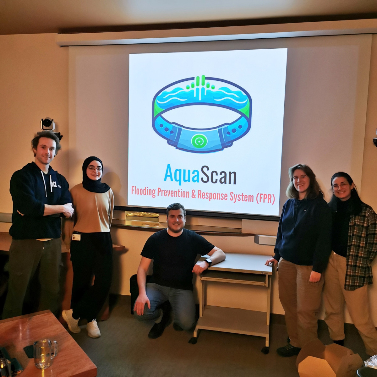 L’équipe AquaScan, composée de Victoria Chidaine, Simon Joly-Naud, Christophe Langevin, Manon Sayag et Nihed Tellili, membres étudiants en sciences de l’eau, a reçu le prix coup de cœur du jury pour leur système de prévention et d’intervention contre les inondations.
