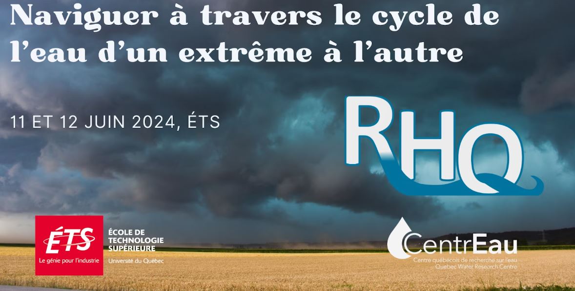 L’édition 2024 du colloque sur la Recherche Hydrologique au Québec (RHQ 2024) qui se tiendra en présentiel à l’École de technologie supérieure (ÉTS) à Montréal se déroulera désormais du 11 et 12 juin 2024. Notez que la thématique du colloque sera : Naviguer à travers le cycle de l’eau d’un extrême à l’autre.