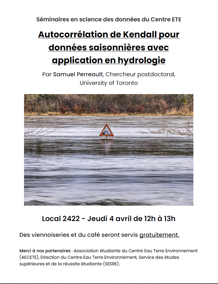 Le comité des séminaires en science des données du Centre ETE vous invite à son troisième (et dernier) séminaire pour la session Hiver 2024 :