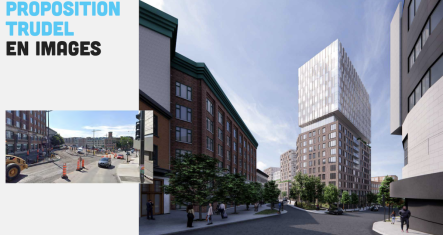 La ville de Québec demande l'avis des citoyens sur le projet du promoteur Trudel qui envisage un projet de 320 logements, une épicerie et un hôtel sur le stationnement qui fait face à notre belle terrasse du 490. Le bâtiment planifié de l'autre côté de Dorchester aurait une hauteur de 20 étages!