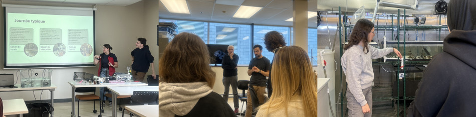 Ce lundi 10 mars, profitant de leur semaine de relâche, plus d'une vingtaine d'étudiants et d'étudiantes du Centre d'études collégiales en Charlevoix (une initiative du Centre de recherche pour des ruralités durables de l'INRS) et du cégep Garneau (une initiative d'Anik Daigke, professeure associée au Centre ETE) accompagnés d'enseignants de leur cégep sont venus s'initier à la recherche scientifique au Centre Eau Terre Environnement.
