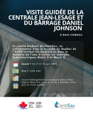 Vous êtes étudiant·e ou jeune professionnel·le membre de CentrEau ou de la Canadian Water Resources Association? Ne manquez pas cette visite technique exceptionnelle des installations hydroélectriques parmi les plus emblématiques du Québec!