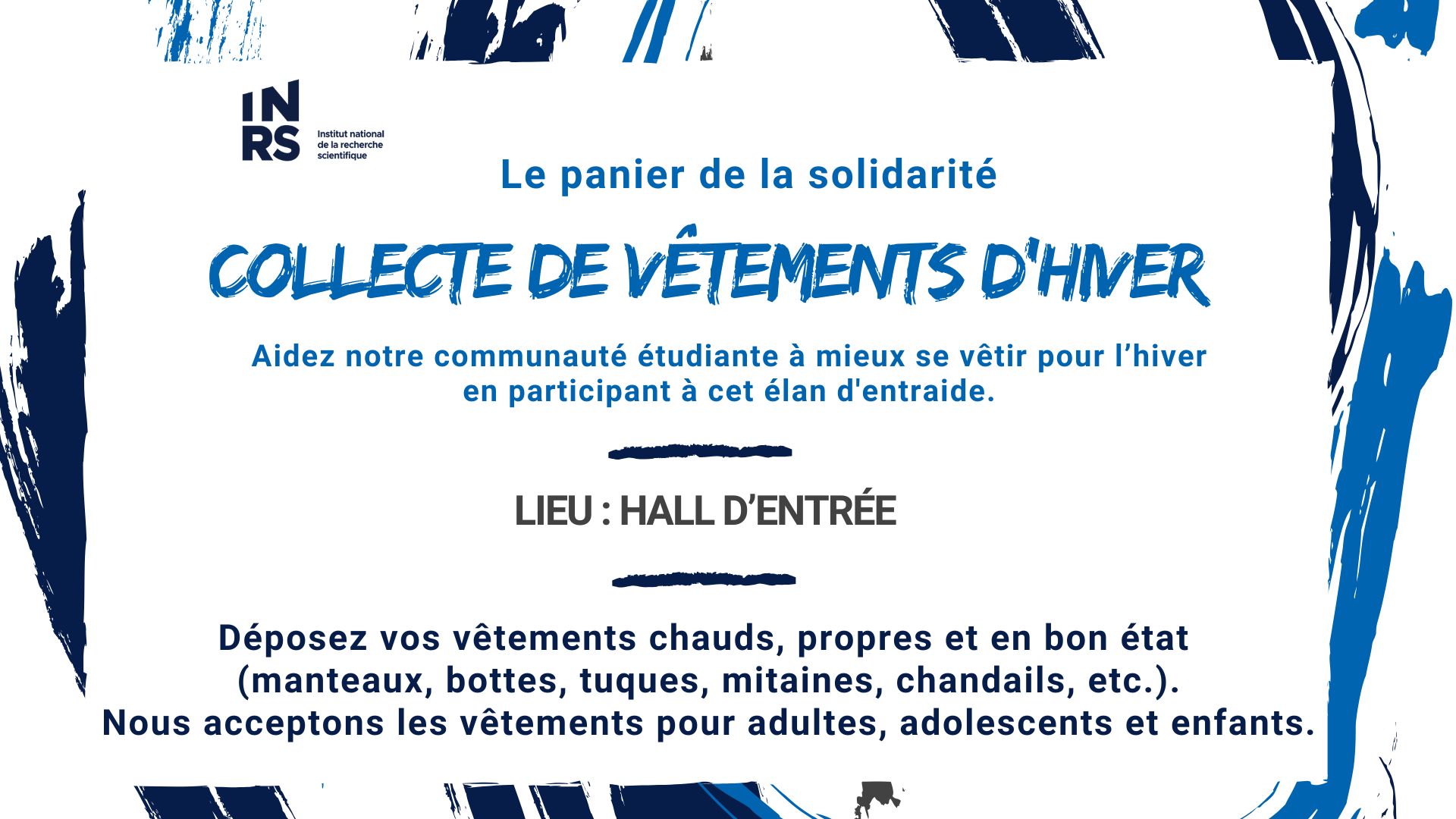 L'hiver arrive à grand pas, alors nous vous invitons à donner vos vêtements chauds que vous ne portez plus dans la boîte de dépôt du hall d'entrée. Ces vêtements pourront servir aux nouveaux arrivants à s'équiper pour les grands froids. C'est également un bon moyen de réduire grandement l'empreinte carbone de votre garde-robe et pour d'autres d'économiser.
