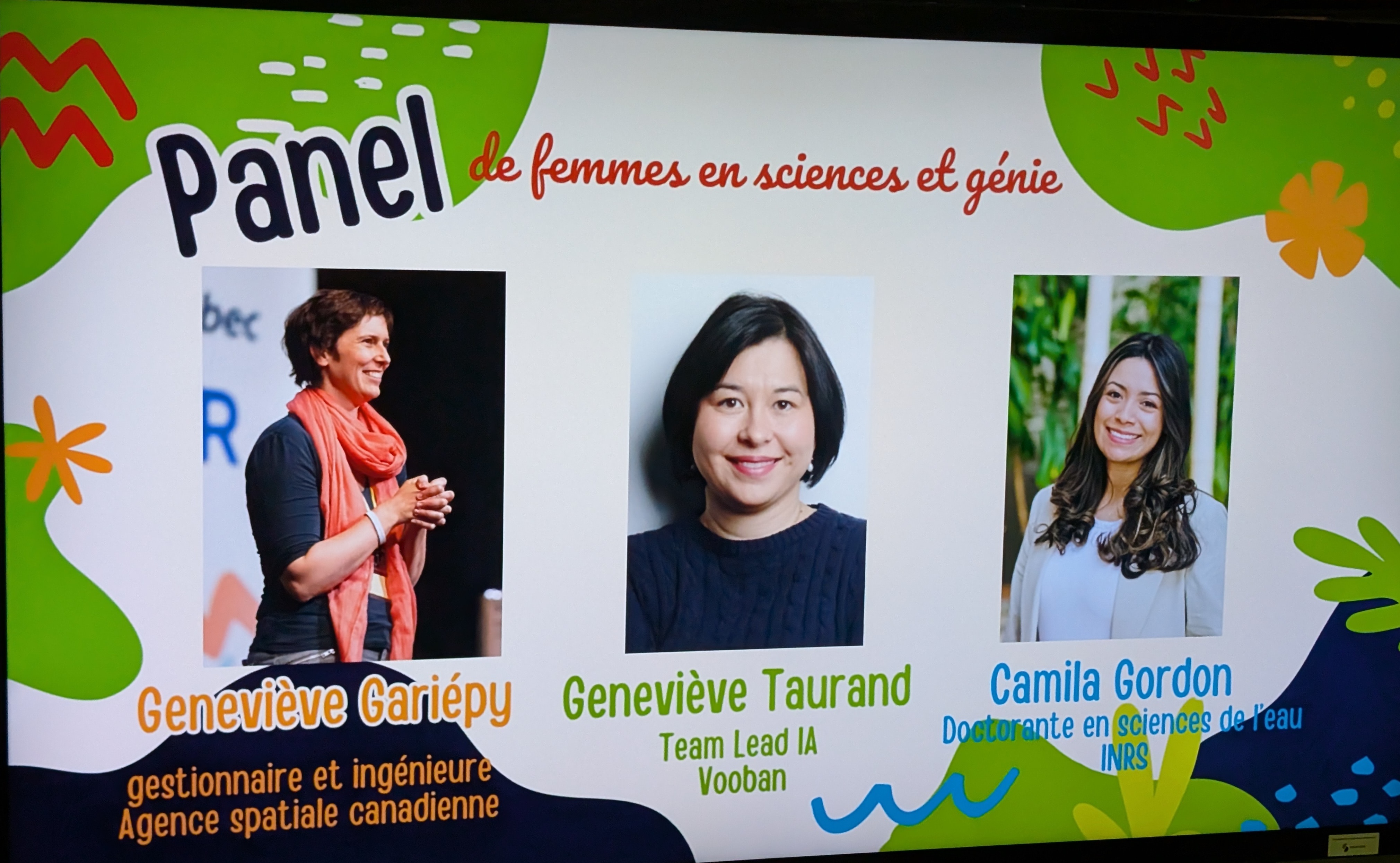 Camila Gordon (3e photo ci-dessous), doctorante dans l'équipe d'Alain Rousseau, participait quant à elle à un panel de femmes en sciences et génie.