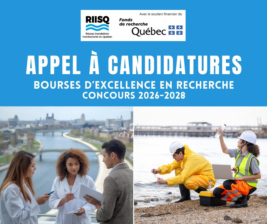 Le Réseau Inondations InterSectoriel du Québec (RIISQ) lance son sixième programme de bourses pour la période 2026-2028 avec un appel à candidatures pour des bourses d’excellence en recherche. Ce programme vise à soutenir la formation et la recherche intersectorielle en matière de préparation, d’adaptation, de gestion et de réponse aux risques systémiques liés à la combinaison ou au cumul d’aléas hydrométéorologiques sur le territoire du Québec.