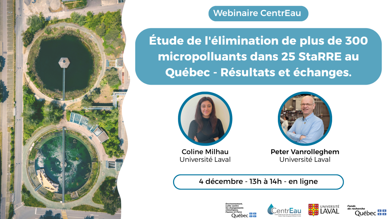 Webinaire CentrEau : Étude de l'élimination de plus de 300 micropolluants dans 25 StaRRE au Québec