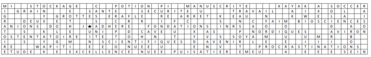 Vous avez été 39 à placer un total 78 mots, occupant 64% des carreaux des tableaux...