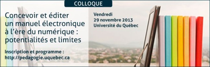 Vous êtes invités à participer au colloque « Concevoir et éditer un manuel de cours à l’ère du numérique : potentialités et limites », vendredi le 29 novembre, de 9h à 16h30, à l’Université du Québec.